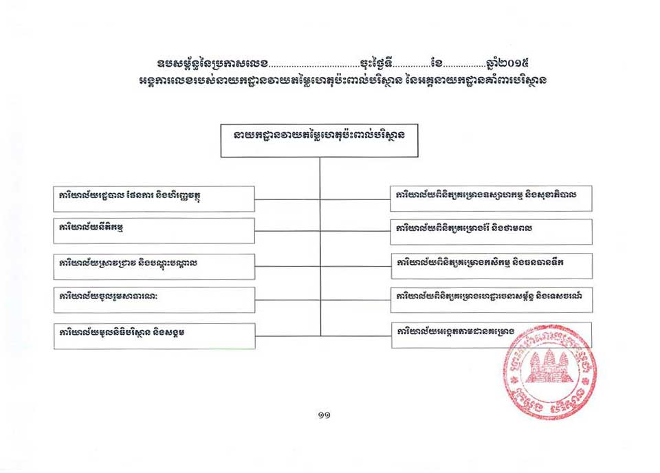 The Ministry of Environment of the Royal Government of Cambodia will be the Implementing Partner, with a number of key technical Ministries providing support which will be coordinated through a Technical Advisory Group. To ensure cross-sectoral integration, responsiveness to local needs and sustainability, sub-national activities of the Project will be integrated with the NP-SNDD under the coordination of NCDD-S. The Project will be implemented in 89 Communes and ten Districts of Siem Reap and Kampong Thom Provinces over a four year period beginning in 2015.